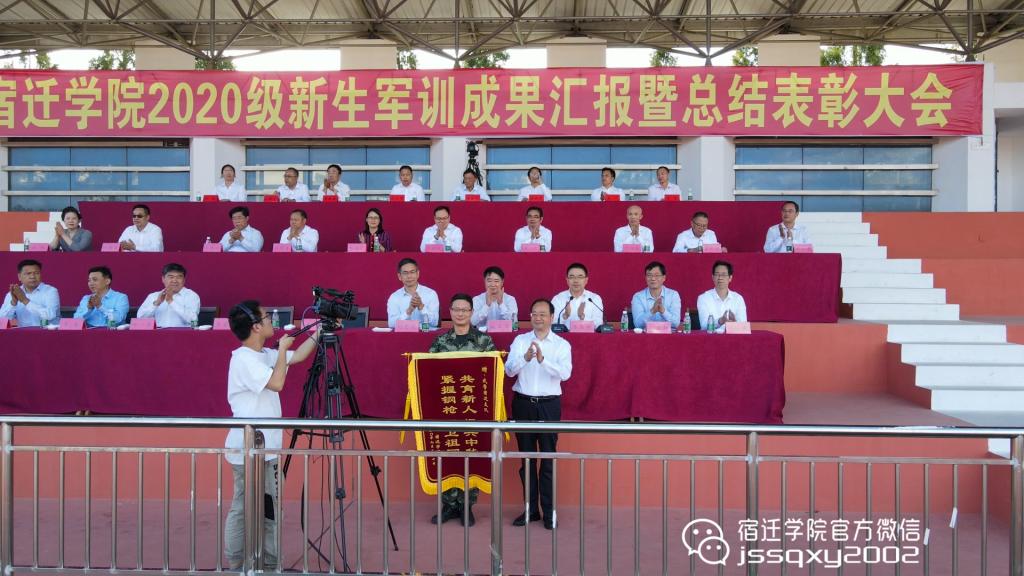 9月27日下午,我校在西田径运动场举行2020级新生军训成果汇报暨总结表彰大会,全体在校的校领导出席大会,校党委书记徐德向承训部队赠送锦旗,校长刘志远发表讲话,副校长潘志明主持大会。