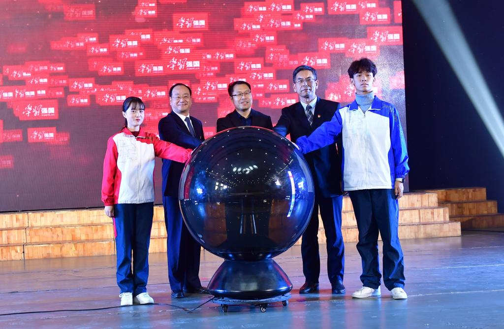 11月18日下午,“学习打卡我来了”学习强国江苏学习平台线下系列活动暨宿迁学院“三问九思”专场活动在我校大学生活动中心多功能厅举办。本次活动由中共江苏省委宣传部指导,学习强国江苏学习平台和新华报业传媒集团精心策划,宿迁学院、中国江苏网、新江苏客户端联合承办。中国江苏网副总编辑翟慎良,校党委书记徐德、校长刘志远和两名学生代表共同启动了专场活动水晶球。