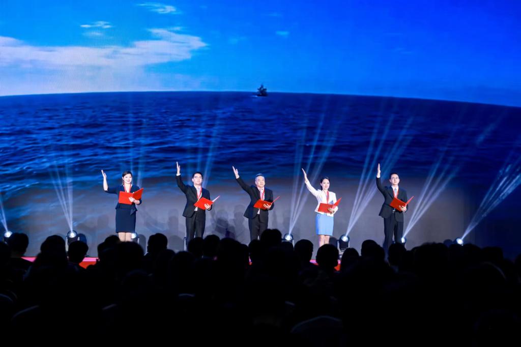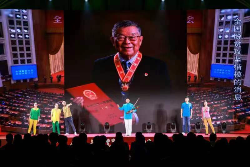 没有生而英勇,只有选择无畏。两套对讲机从不离身,一身红色救援服分外醒目,宿迁市宿城区黄河水上志愿救援队队长王爱东14年来先后把三百多条生命从死亡线上拉了回来。苏北大鼓非遗传承人王浩宇用一曲《高飞的风筝》,将这位古黄河畔“生命守护者”的事迹传递给现场观众。而故事的原型、全国道德模范王爱东更是亲临现场,和我校的老师同学们共同在舞台上开展了一场沉浸式情景党课——《道德星空的播火者》。演出结束后,雷鸣般的掌声久久回荡在现场,道德的力量闪耀在校园的星空下。