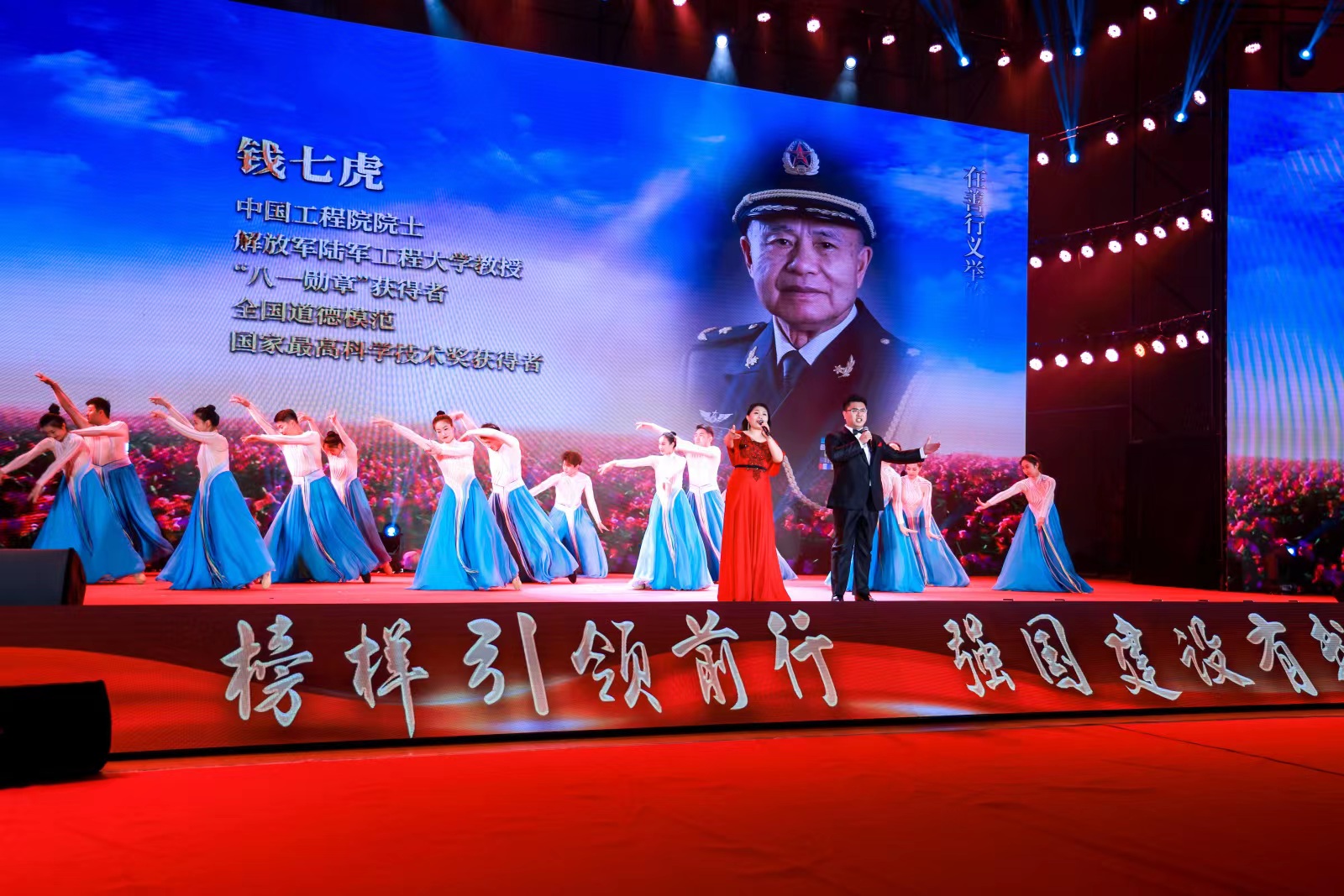本次巡演以党的十八大以来江苏涌现出的道德模范与中国好人事迹为素材,运用歌舞、快板、朗诵、戏曲、情景短剧等多种艺术形式,展现赵亚夫、钱七虎、周维忠、糜林、邱海波、叶聪、王爱东等先进典型的感人事迹和崇高精神,作为一堂特殊的思政课送进宿迁学院校园。全国道德模范王爱东、中国好人李金娥等十余名来自宿迁各界的道德模范和好人代表莅临活动现场并在前排落座观看演出,我校学生代表为他们献上鲜花,全场观众以热烈的掌声向他们致以崇高敬意。