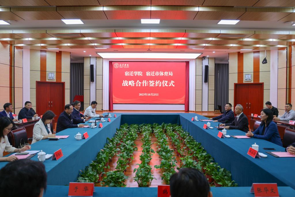 10月25日下午,我校与宿迁市体育局签署战略合作协议。校领导徐德、潘志明、丁红燕、陆海霞,市体育局局长陈恒、副局长王艳、祁全、三级调研员谭永清出席签约仪式。签约仪式由校纪委书记刘立新主持。