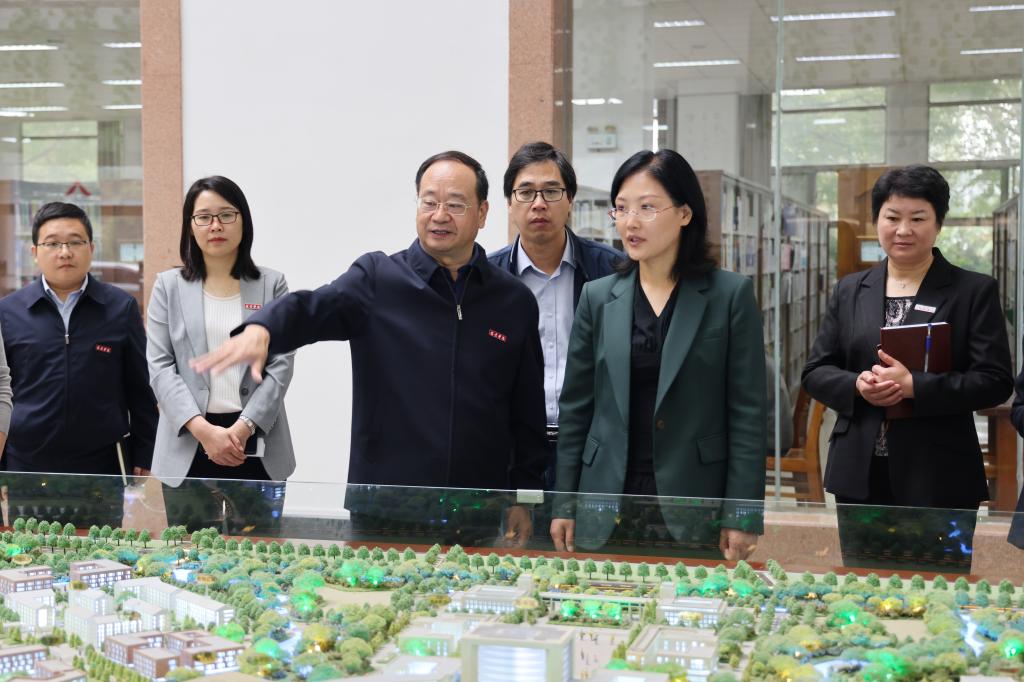 徐德书记对史明霞一行来校调研表示热烈欢迎,陪同参观了校史馆,并简要介绍了学校发展历程、转制以来高质量发展取得的丰硕成果、学校新校区规划及目前开工建设进度等情况。