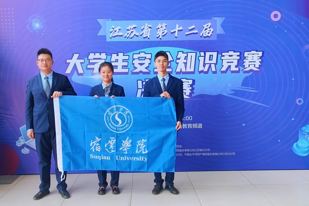 12月23日,江苏省第十二届大学生安全知识竞赛总决赛落下帷幕,我校冯天阳、仇夏莉、刘炜权三名同学组成的宿迁学院代表队,经过层层选拔和激烈角逐,最终进入总决赛并荣获本科组一等奖。本届比赛由江苏省教育厅主办、江苏省高教学会保卫研究会承办、江苏省广播电视总台教育频道协办,省教育厅副厅长、党组成员、省委教育工委委员吴昊,省广播电视总台党委委员、副台长崔峰出席活动并为获得一等奖的选手颁奖。
