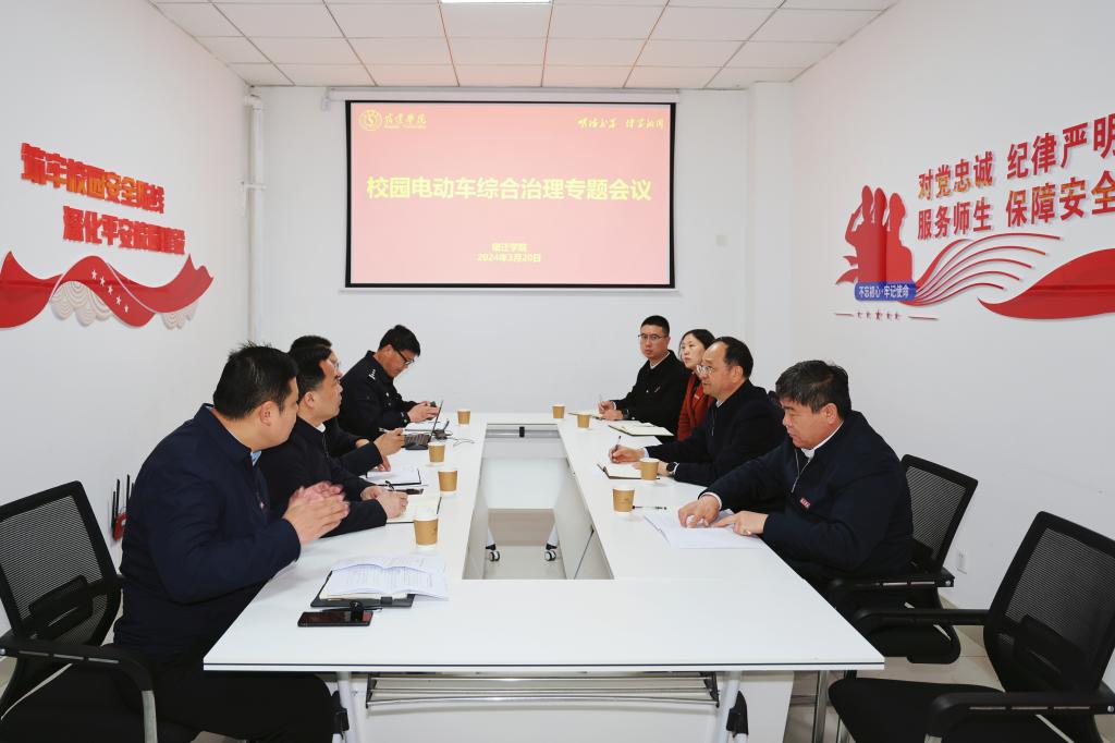 校党委副书记田一聚,学工处、后勤处、保卫处等部门负责人陪同检查。会上,保卫处负责人汇报了关于进一步加强校园电动车综合治理的实施方案及前一阶段校园电动车专项治理开展情况。