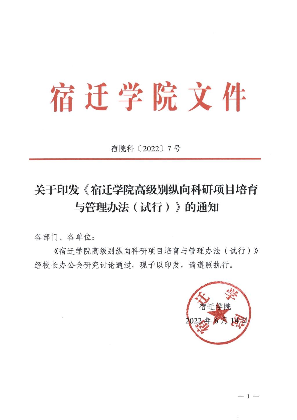 宿迁学院高级别纵向科研项目培育与管理办法(试行)