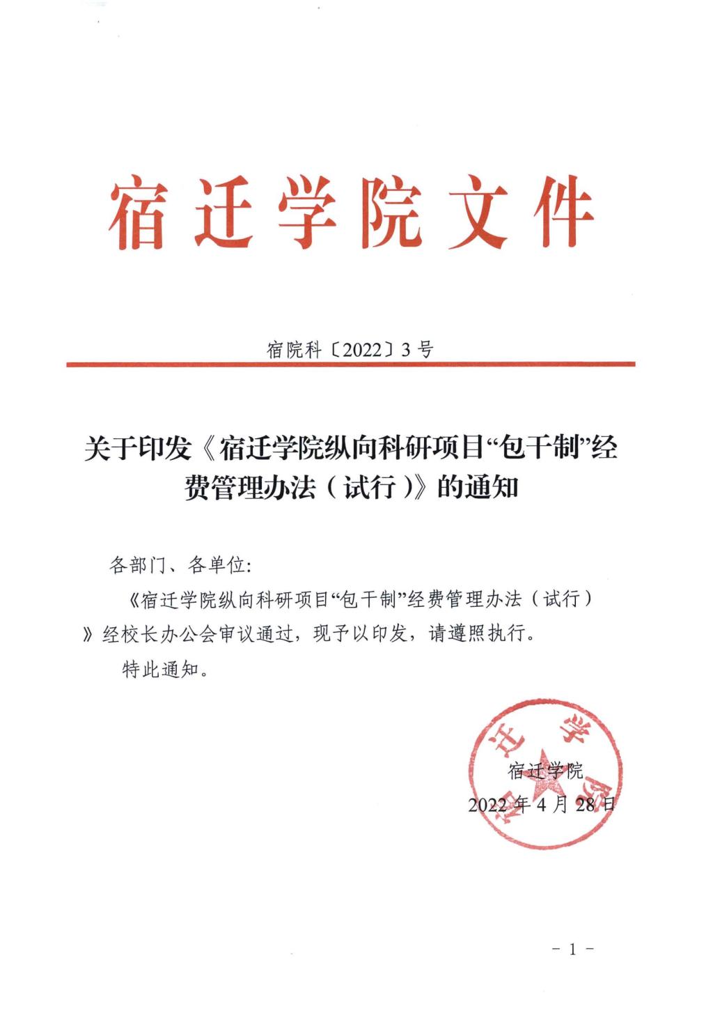 宿迁学院纵向科研项目“包干制” 经费管理办法(试行)