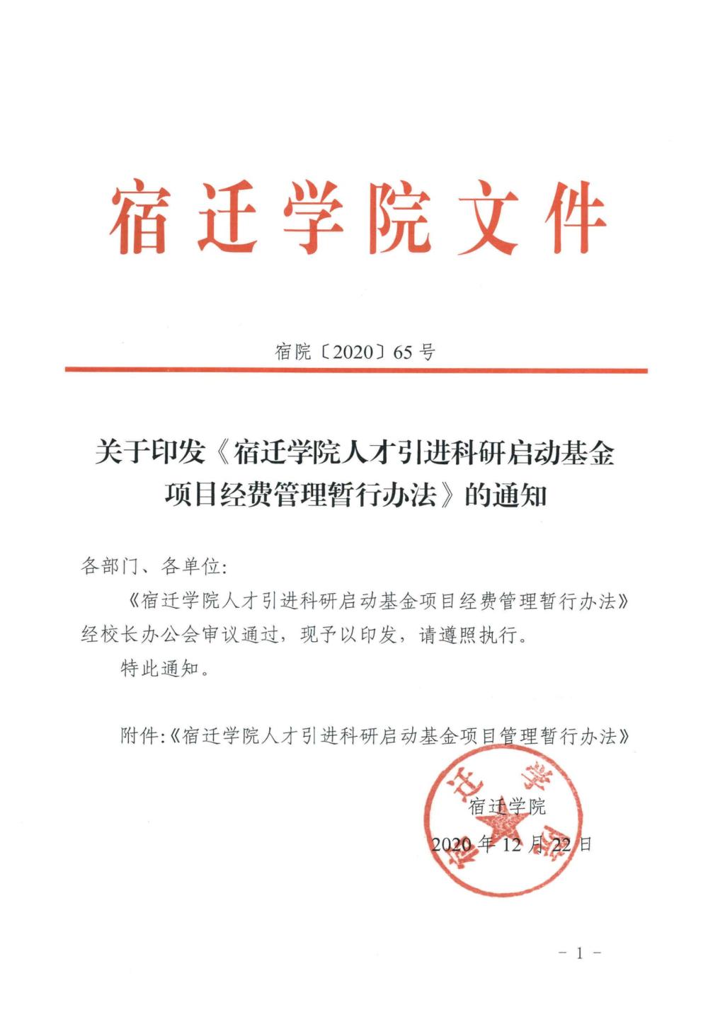 宿迁学院人才引进科研启动基金项目经费管理暂行办法