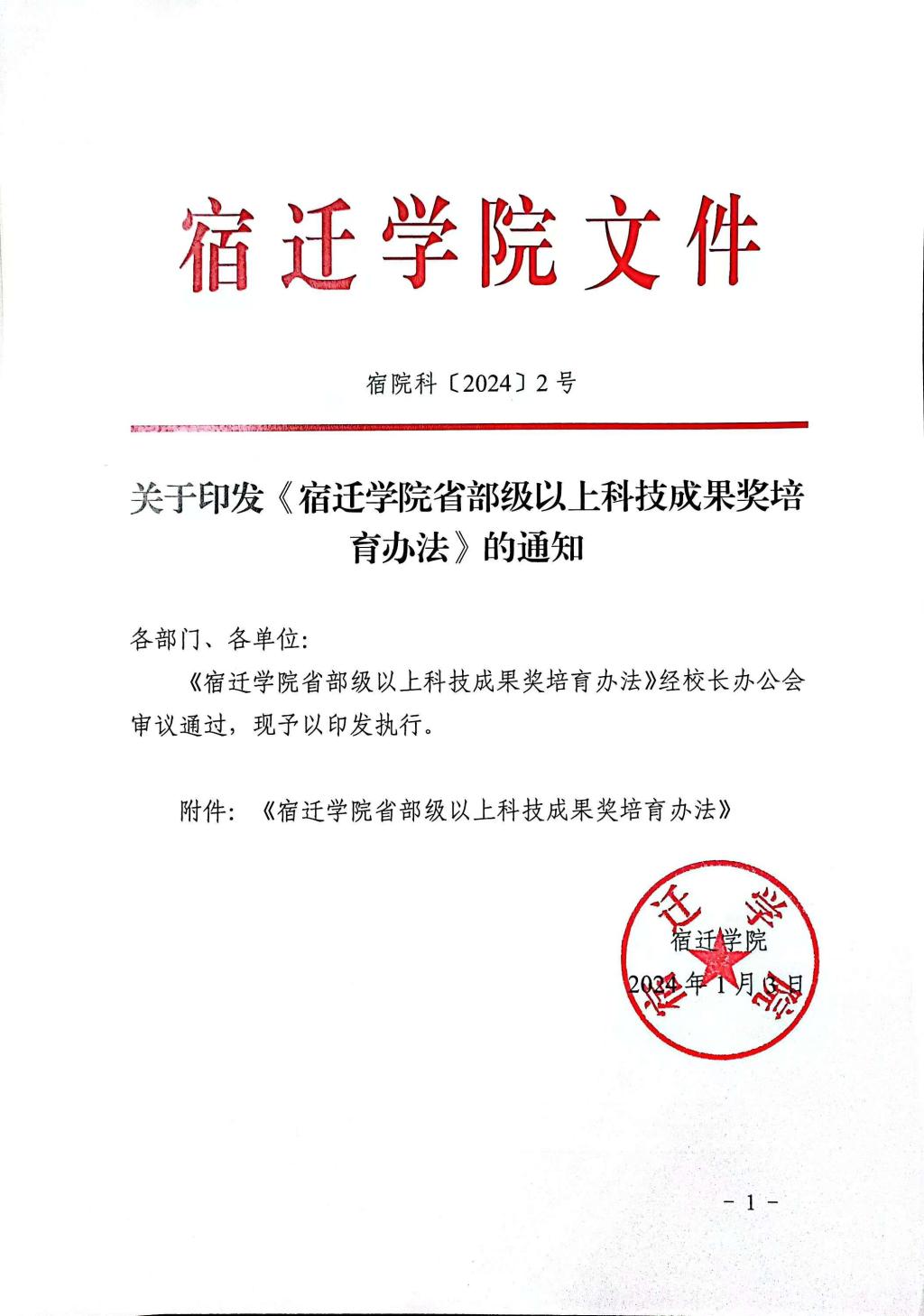 宿迁学院省部级以上科技成果奖培育办法(宿院科〔2024〕2号)