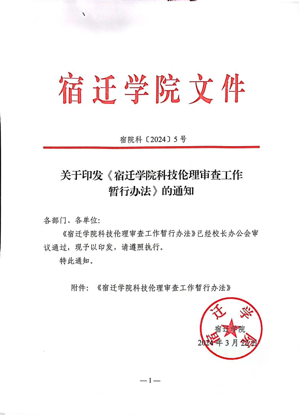宿迁学院科技伦理审查工作暂行办法(宿院科〔2024〕5号)