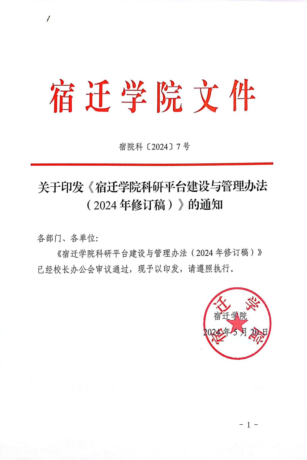 宿迁学院科研平台建设与管理办法(2024年修订稿)(宿院科〔2024〕7号)